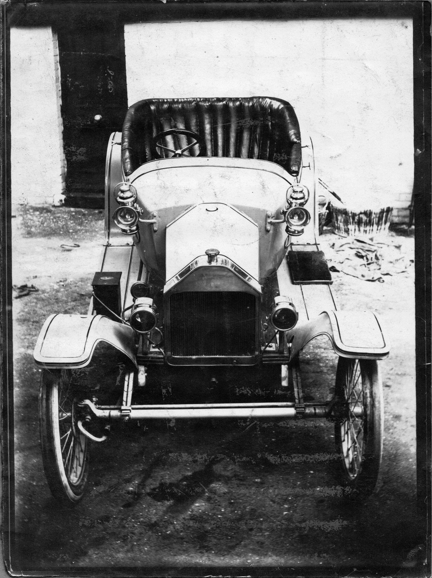 absence of a hood, although the posts for it's attachment are fitted. Created from original glass plate negative.